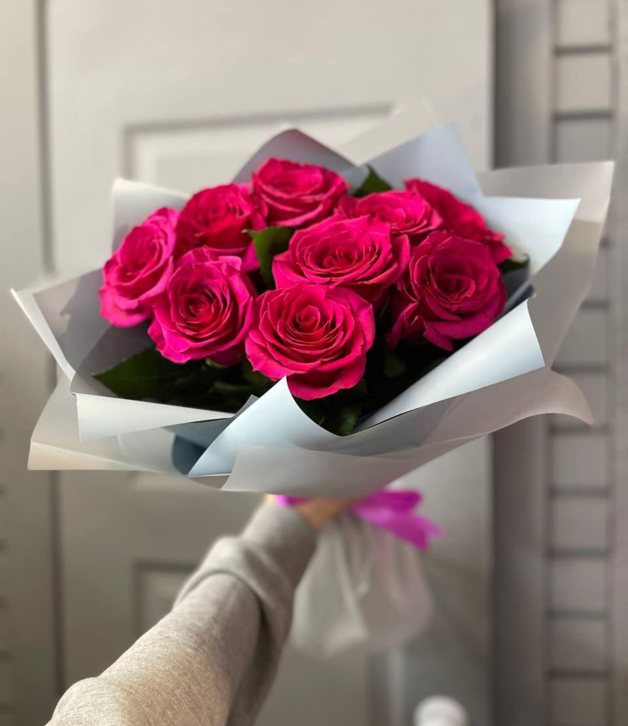 Малиновые розы в упаковке Букет из 9 малиновых роз