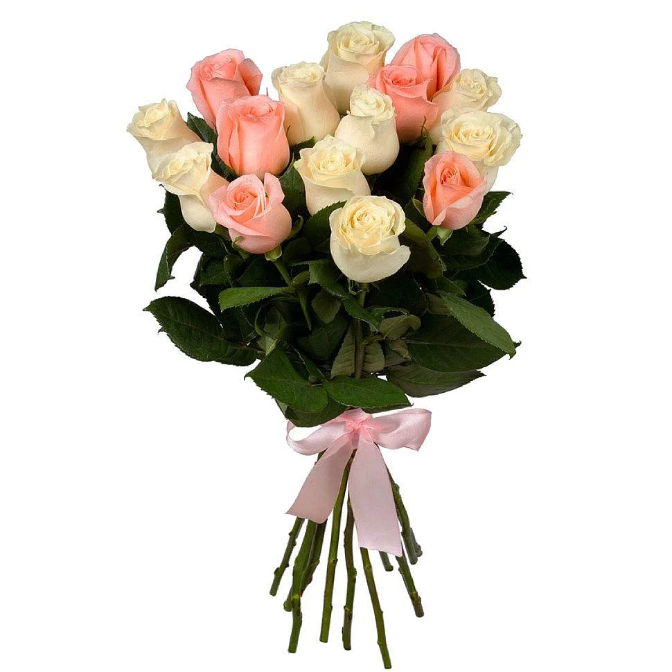 Подарив шикарный букет из белых и розовых роз  значимой женщине в обычный день, Вы навсегда завоюете ее сердце и душу. Нежная  композиция подойдет для подарка в день рождения, поможет показать насколько у вас тонкий вкус.
