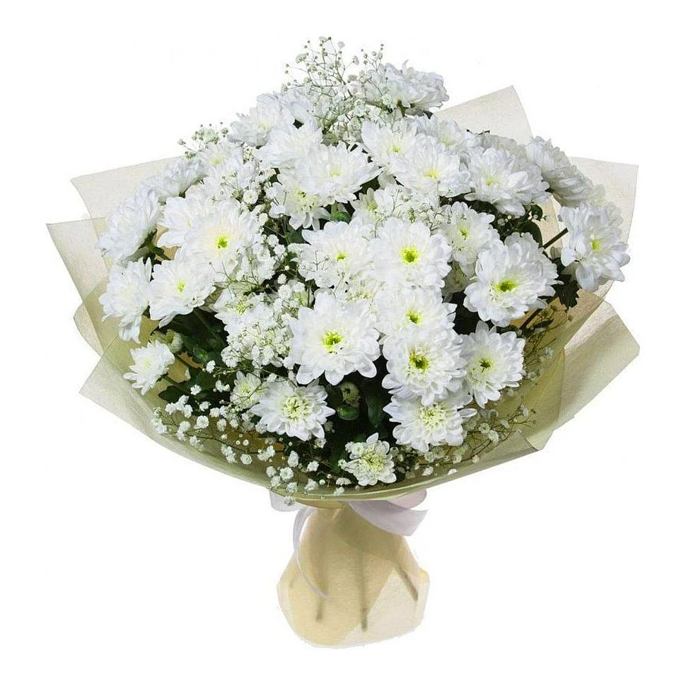 Нежный букет сочетает в себе белые хризантемы и гипсофилу, которые отлично гармонируют друг с другом .Цветы выражают нежность и заботу, чистоту намерений. Они универсальны, подойдут любимой девушке, коллеге и даже ребенку !