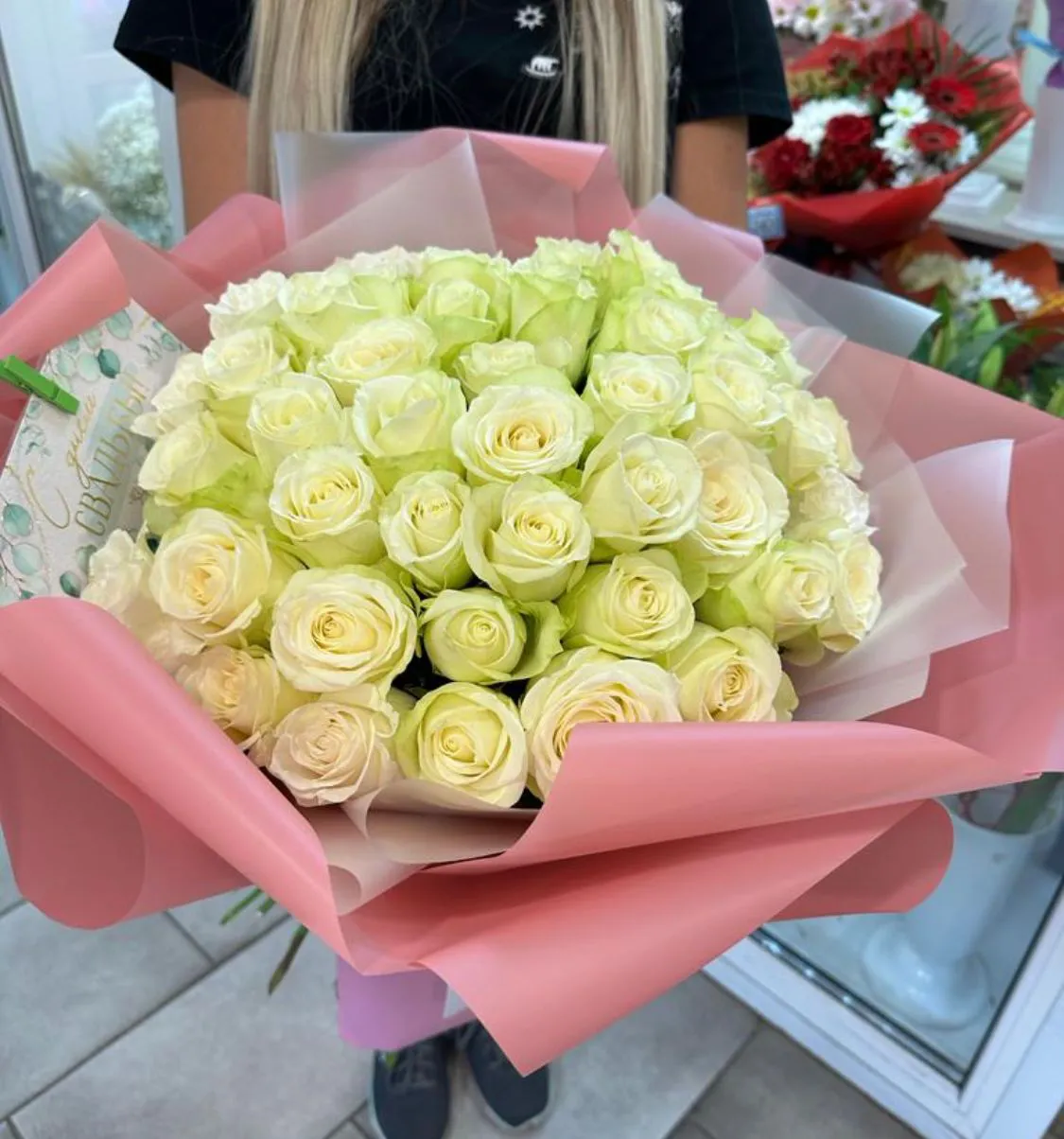 С букетом из белых роз хорошее настроение ваших любимых обеспечено!.